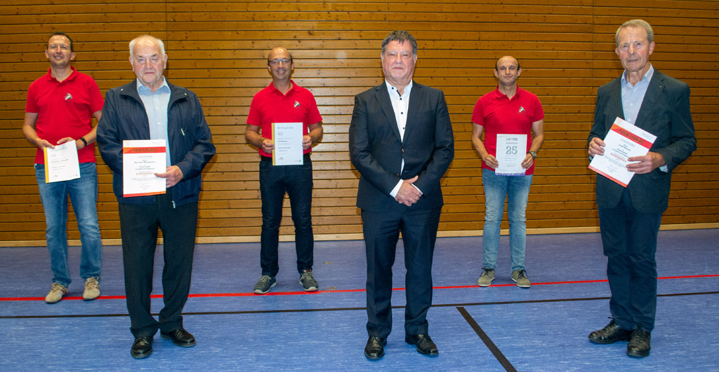 Ehrungen: Der Präsident des Markgräfler Musikverbandes Bernhard Metzger ehrte fünf Musiker für ihr langjähriges Engagement. Bernhard Muckenhirn erhielt dabei die äußerst seltene Ehrung für 70 Jahre aktives Musizieren und der Ehrenvorsitzende Josef Wiesler für 60 Jahre. Uli Scherer und Christian Scmidt wurden für 40 Jahre und Andreas Pfefferle für 25 Jahre geehrt.