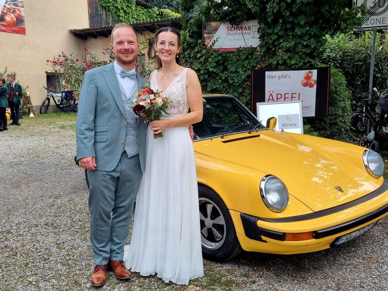 Gerne sind wir der Einladung gefolgt und haben das Brautpaar nach der Trauung in Wettelbrunn musikalisch empfangen. Da Franziska beim Musikverein Wettelbrunn als Saxophonistin aktiv ist, spielte die Schwarzwaldkapelle gemeinsam mit den Wettelbrunner Musikerinnen und Musikern unter der Leitung von Niklas Maier.
