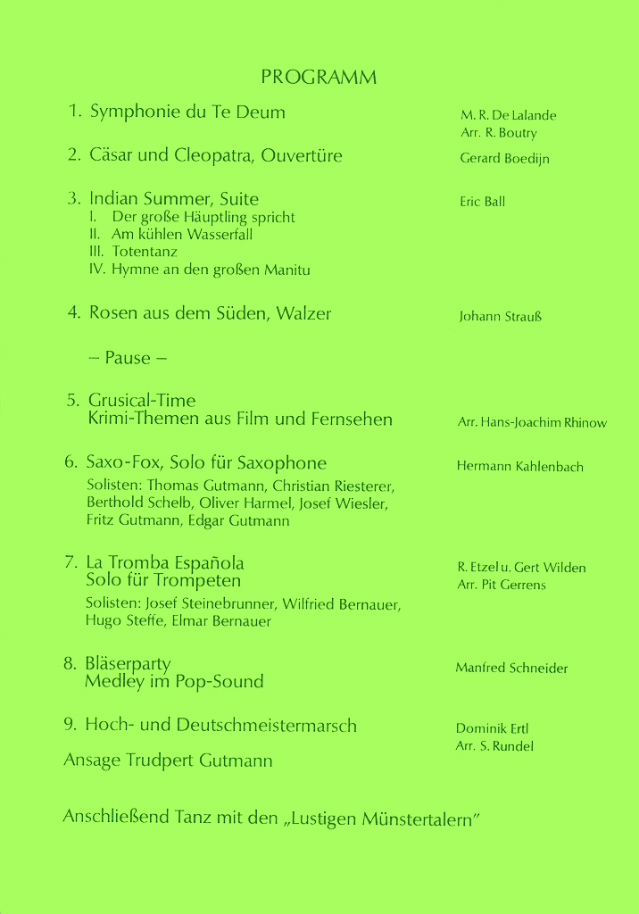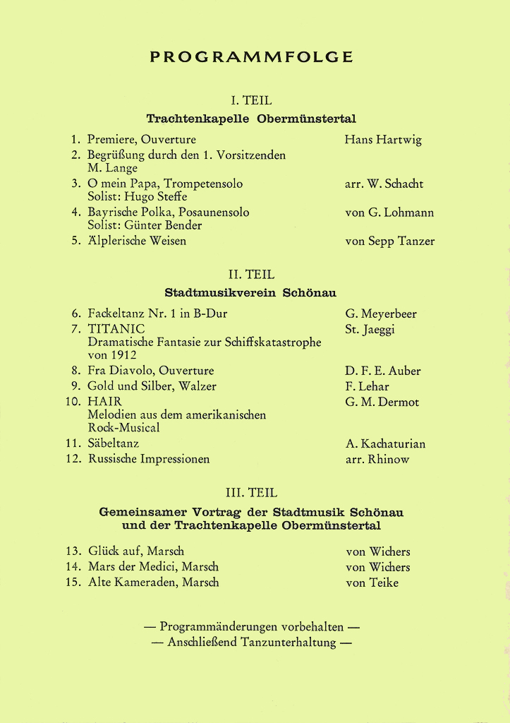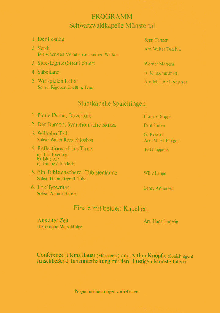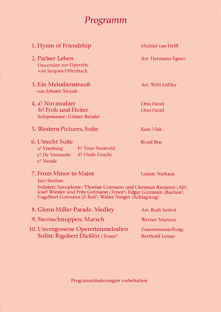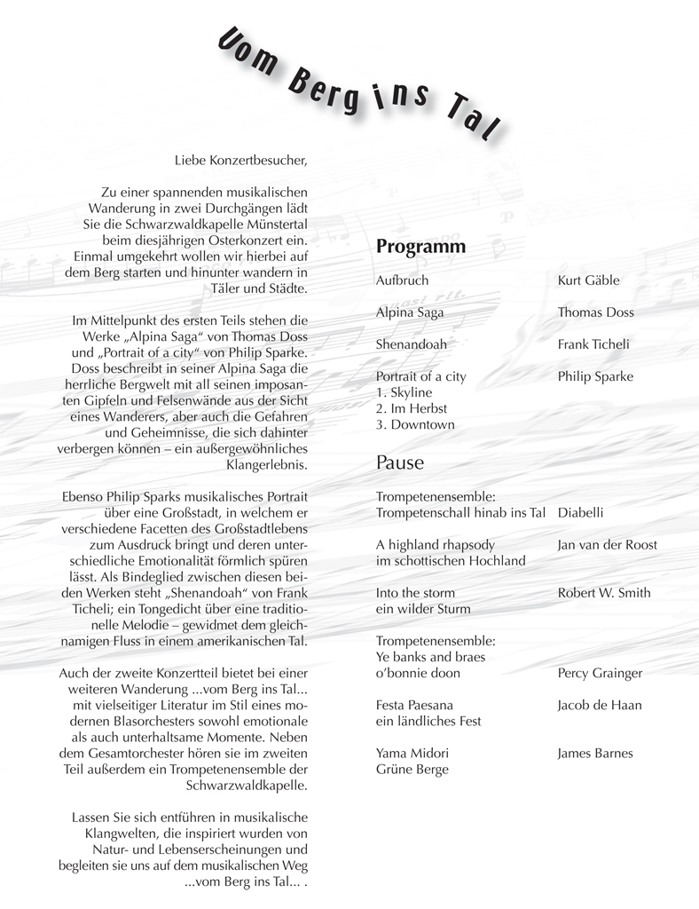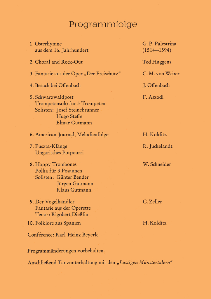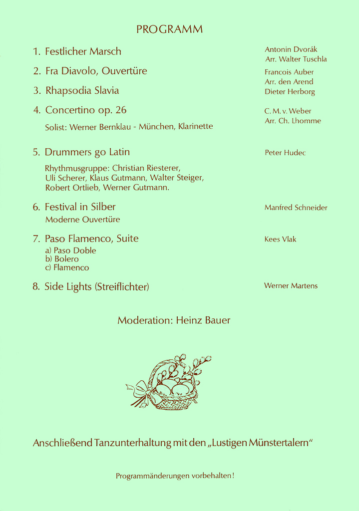 Wir haben hier alle Osterkonzert-Programme seit 1972 archiviert und wollen so einen Rückblick auf die jeweiligen Konzertinhalte ermöglichen und gleichzeitig auch einen Einblick in unser Repertoire geben.