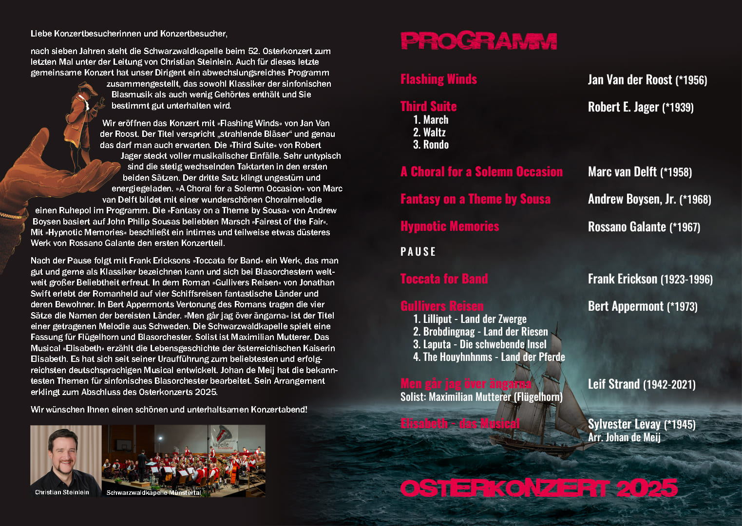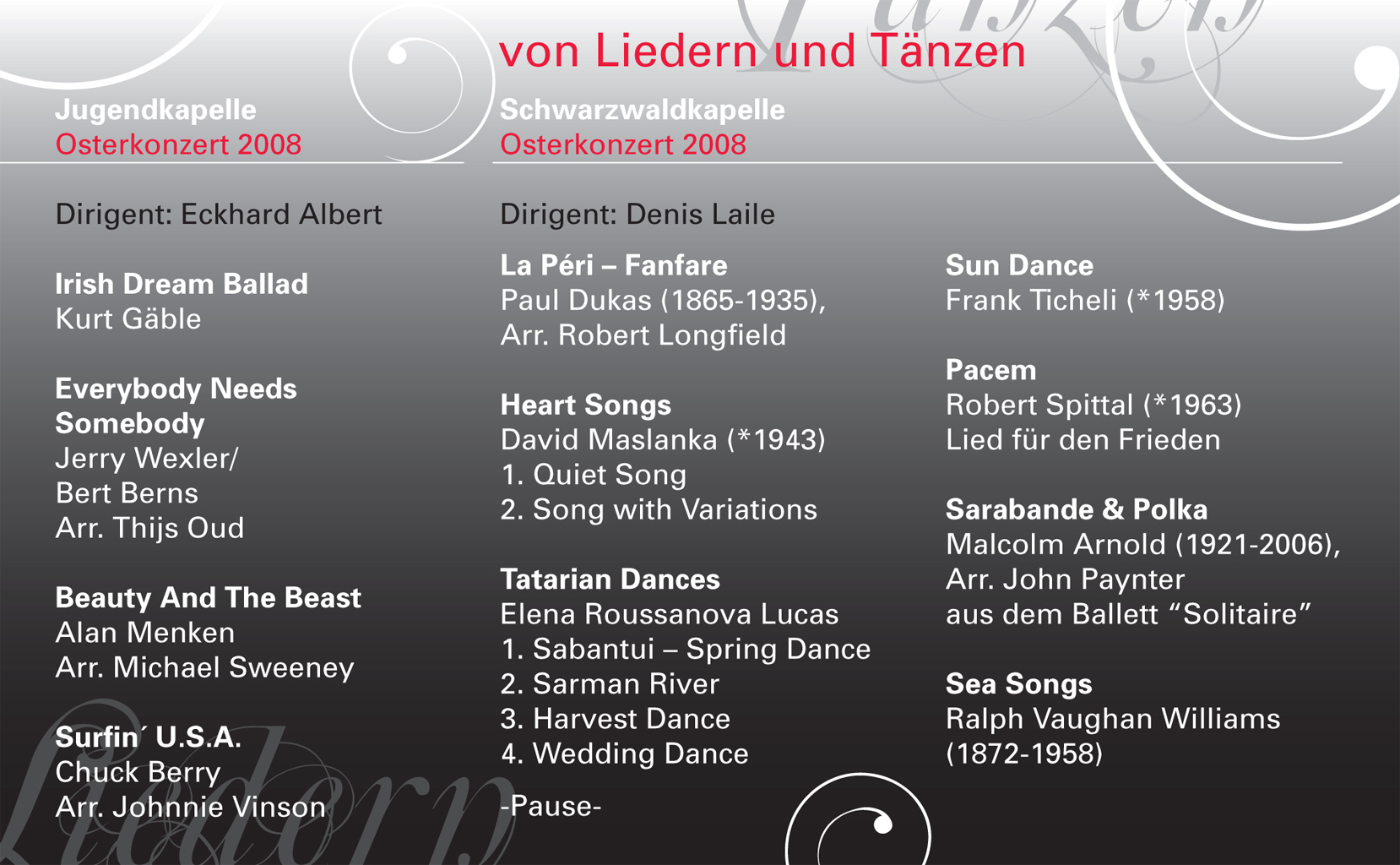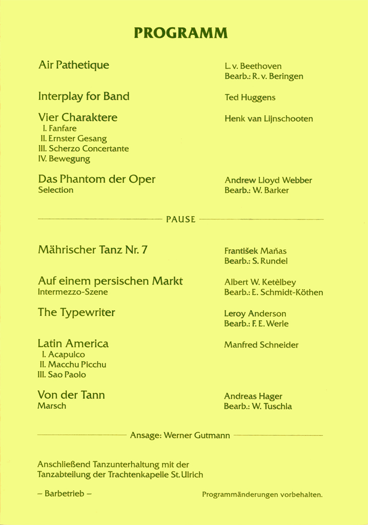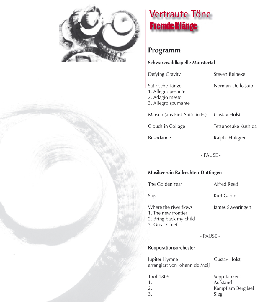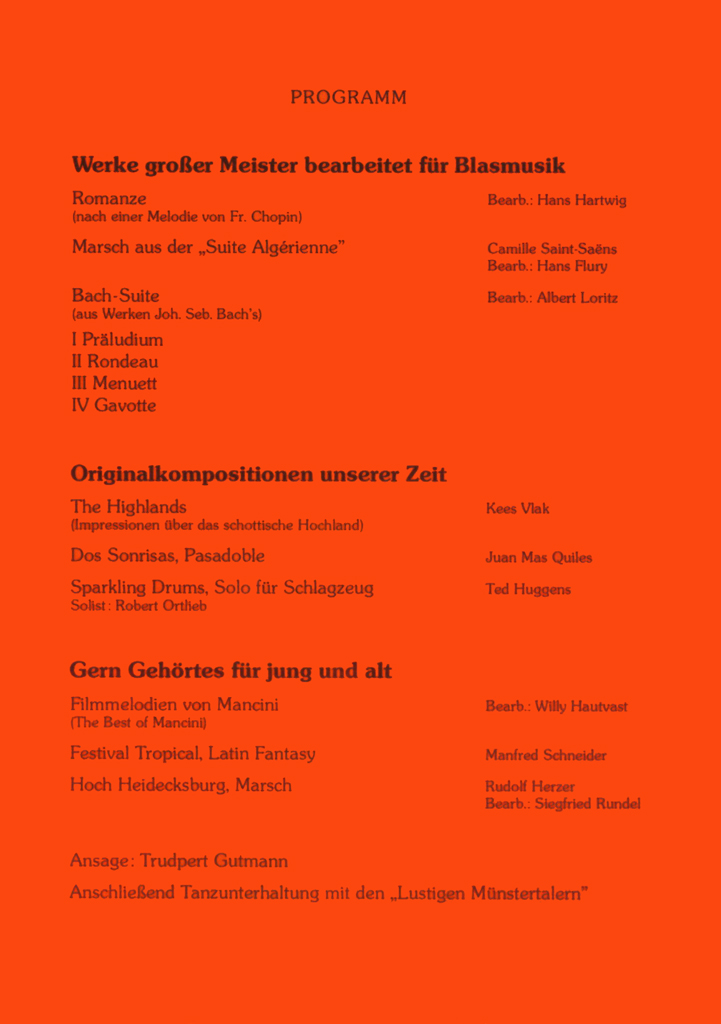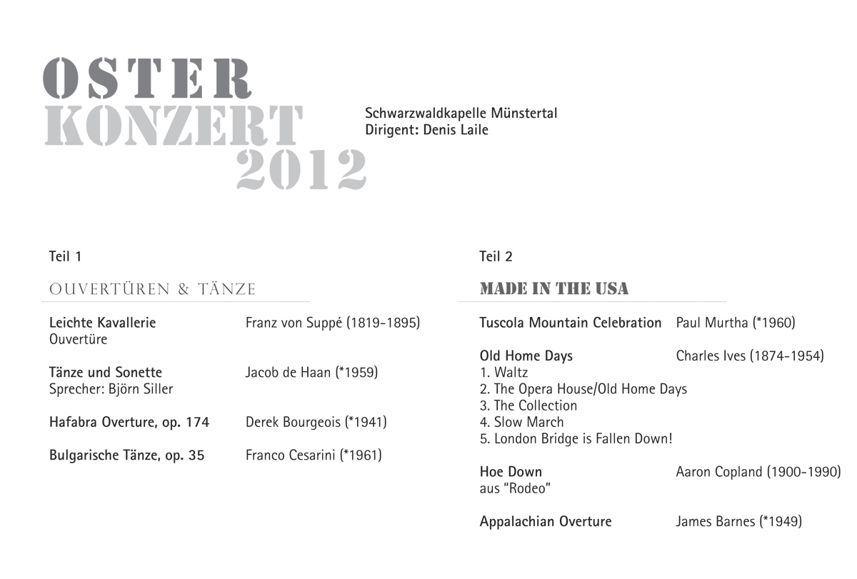 Wir haben hier alle Osterkonzert-Programme seit 1972 archiviert und wollen so einen Rückblick auf die jeweiligen Konzertinhalte ermöglichen und gleichzeitig auch einen Einblick in unser Repertoire geben.