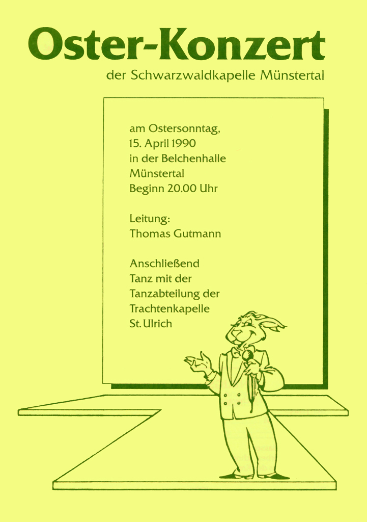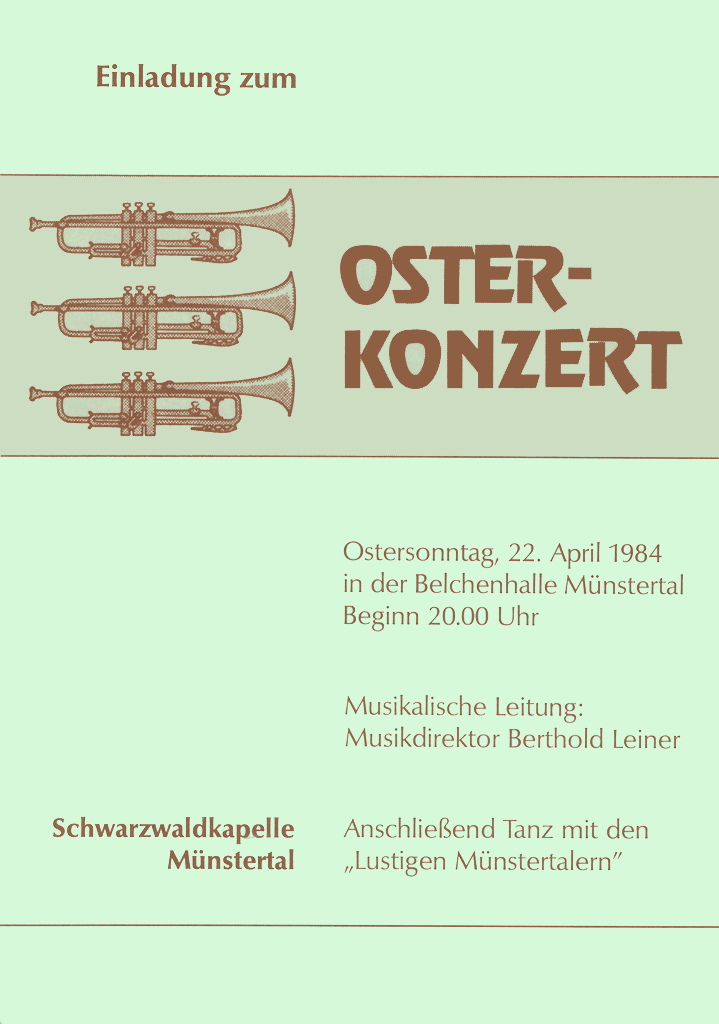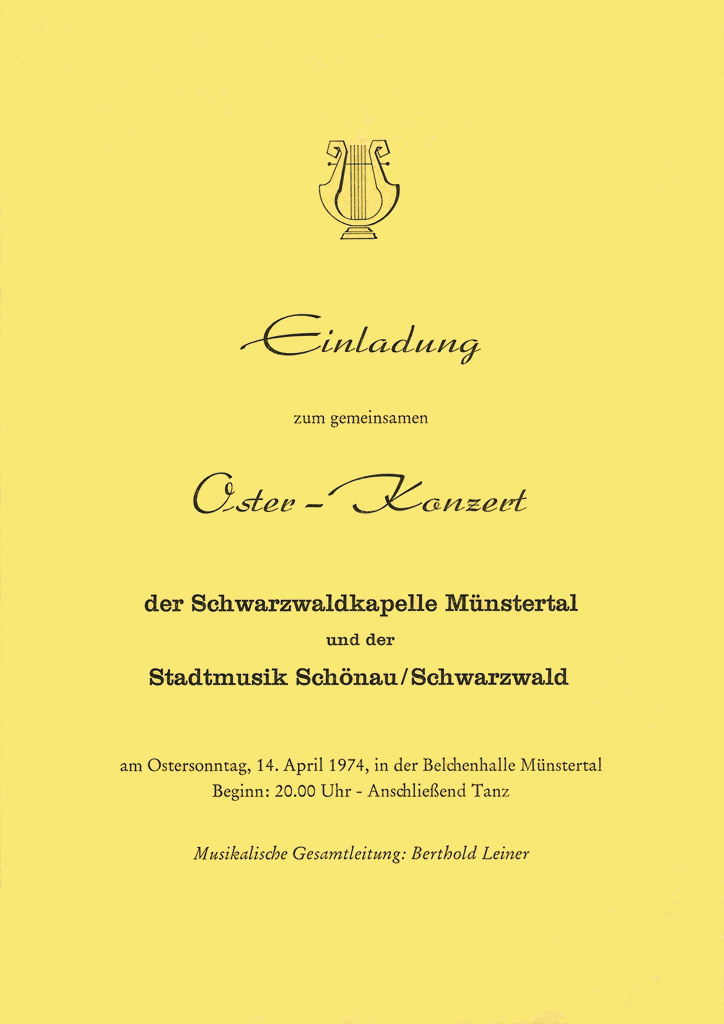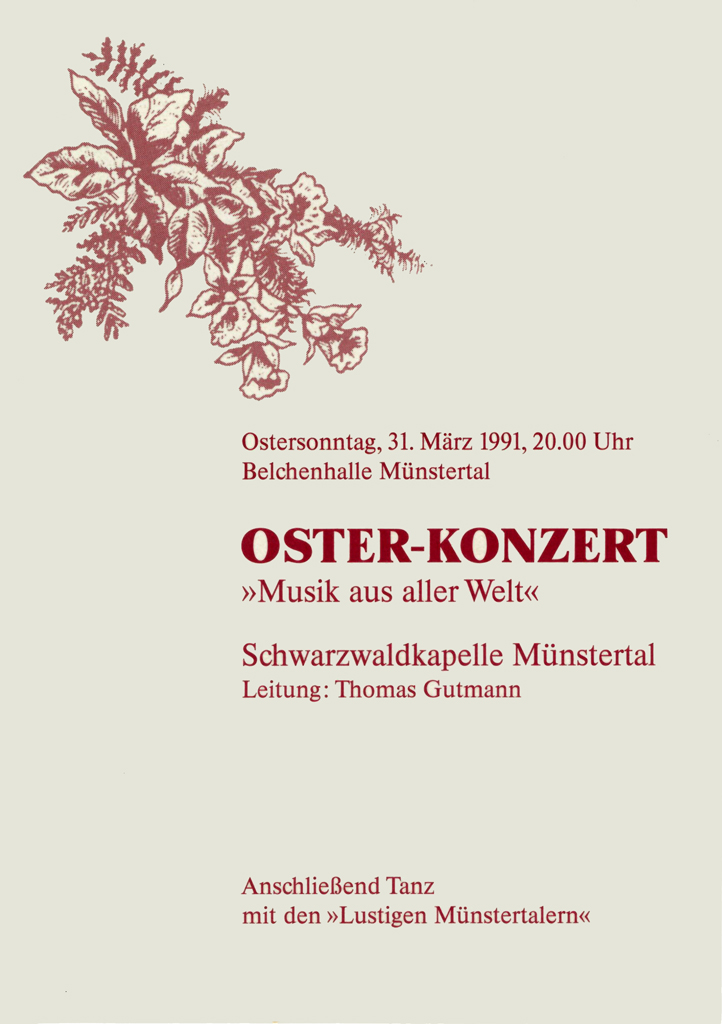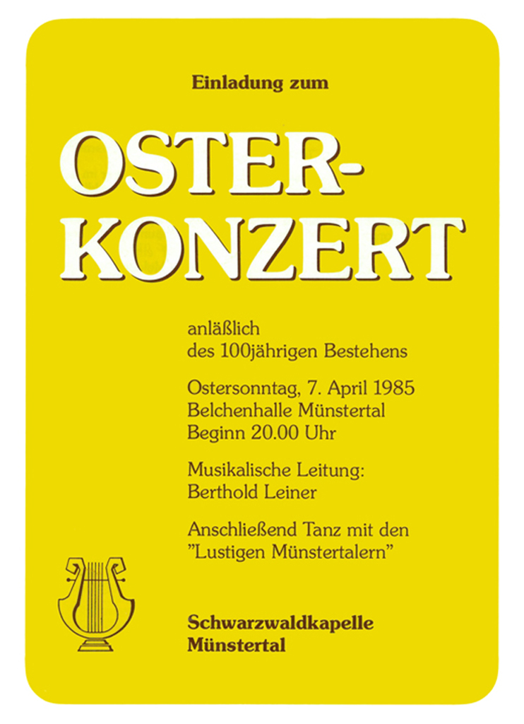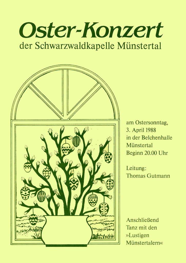 Das Osterkonzert ist der musikalische Höhepunkt im Jahresprogramm der Schwarzwaldkapelle. Es wird seit 1972 in ununterbrochener Folge veranstaltet und lockt zahlreiche Besucher auch von weit außerhalb des Münstertals an.