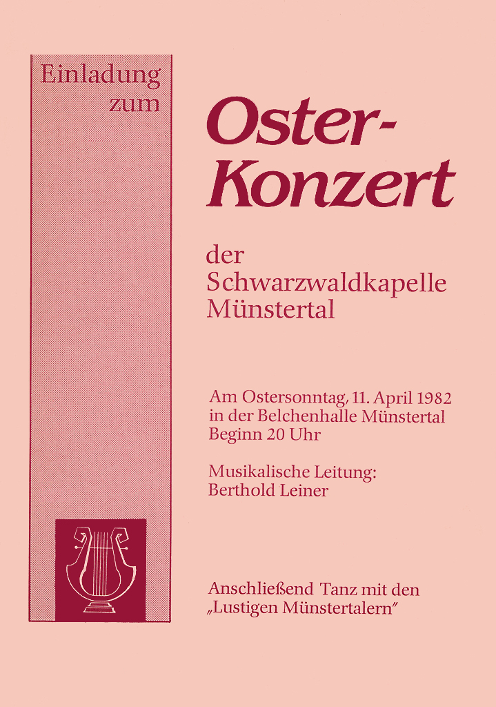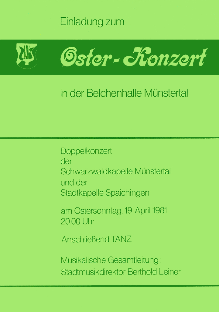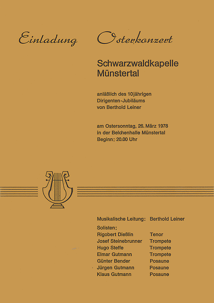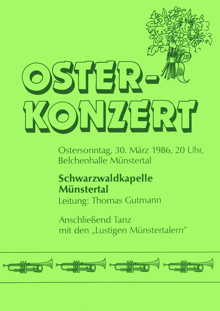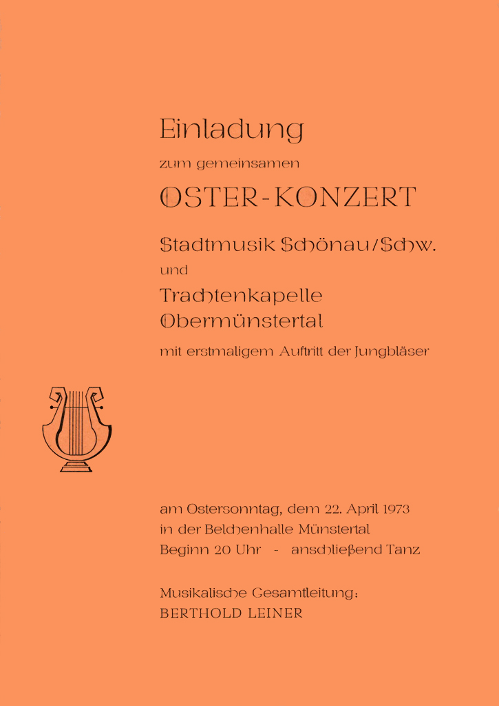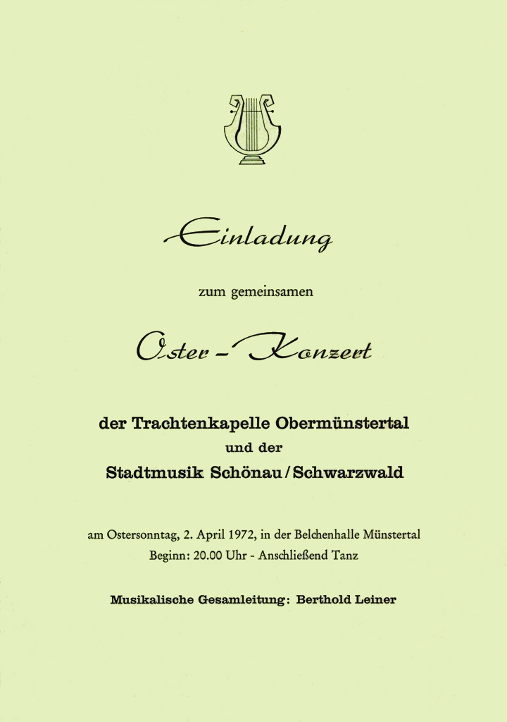 Das Osterkonzert ist der musikalische Höhepunkt im Jahresprogramm der Schwarzwaldkapelle. Es wird seit 1972 in ununterbrochener Folge veranstaltet und lockt zahlreiche Besucher auch von weit außerhalb des Münstertals an.