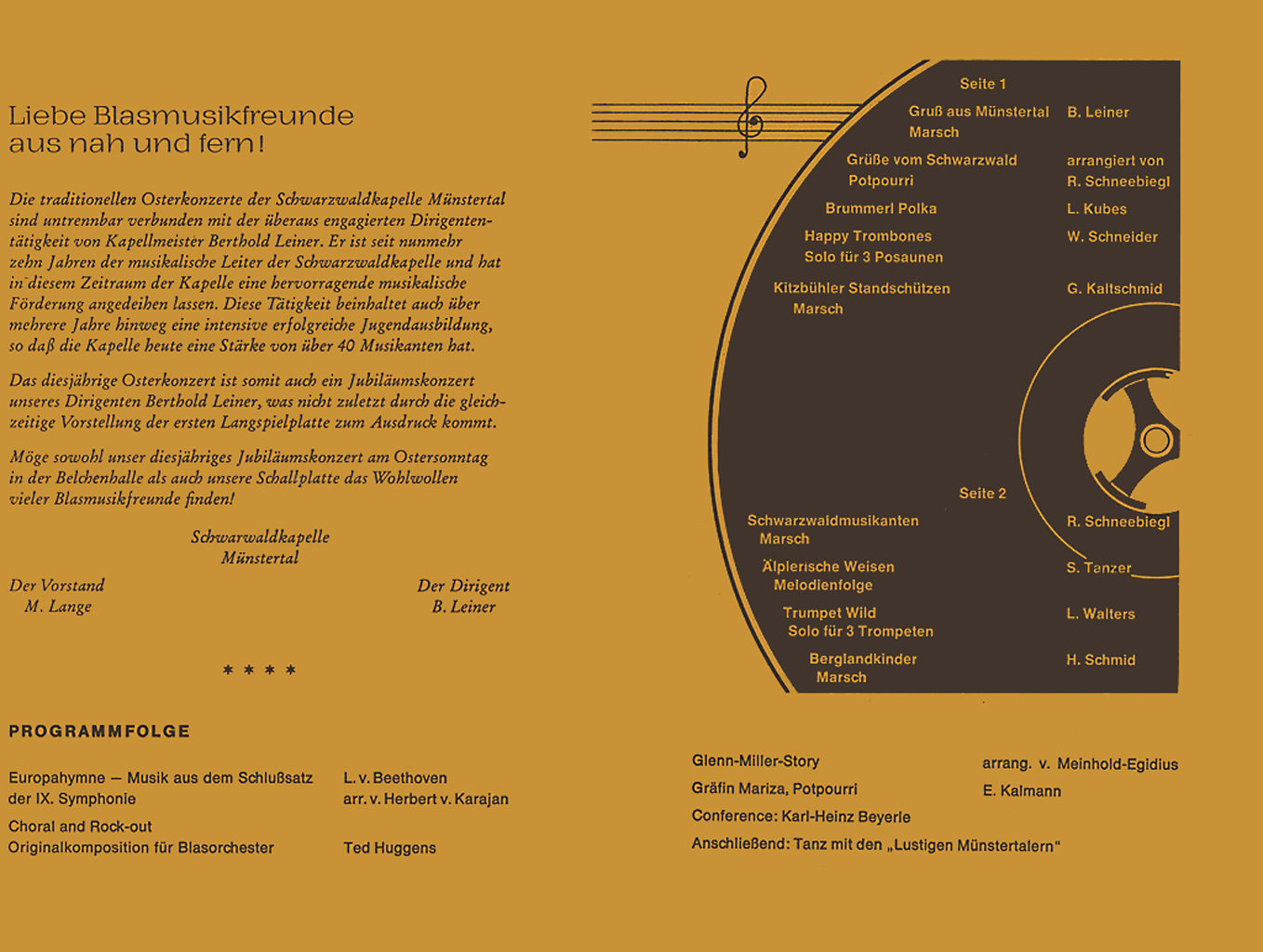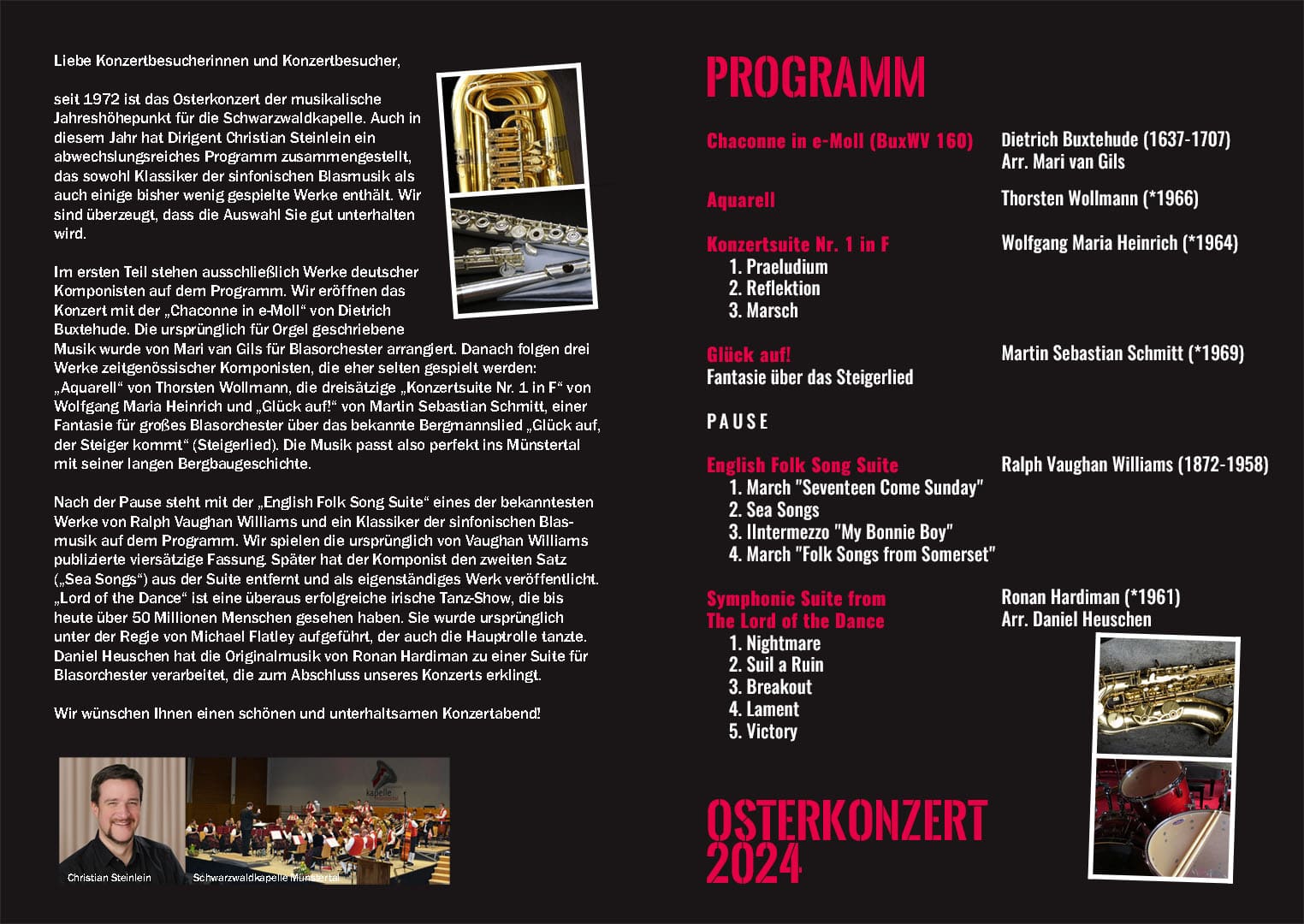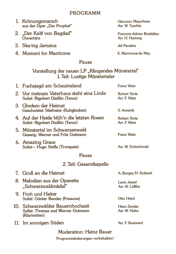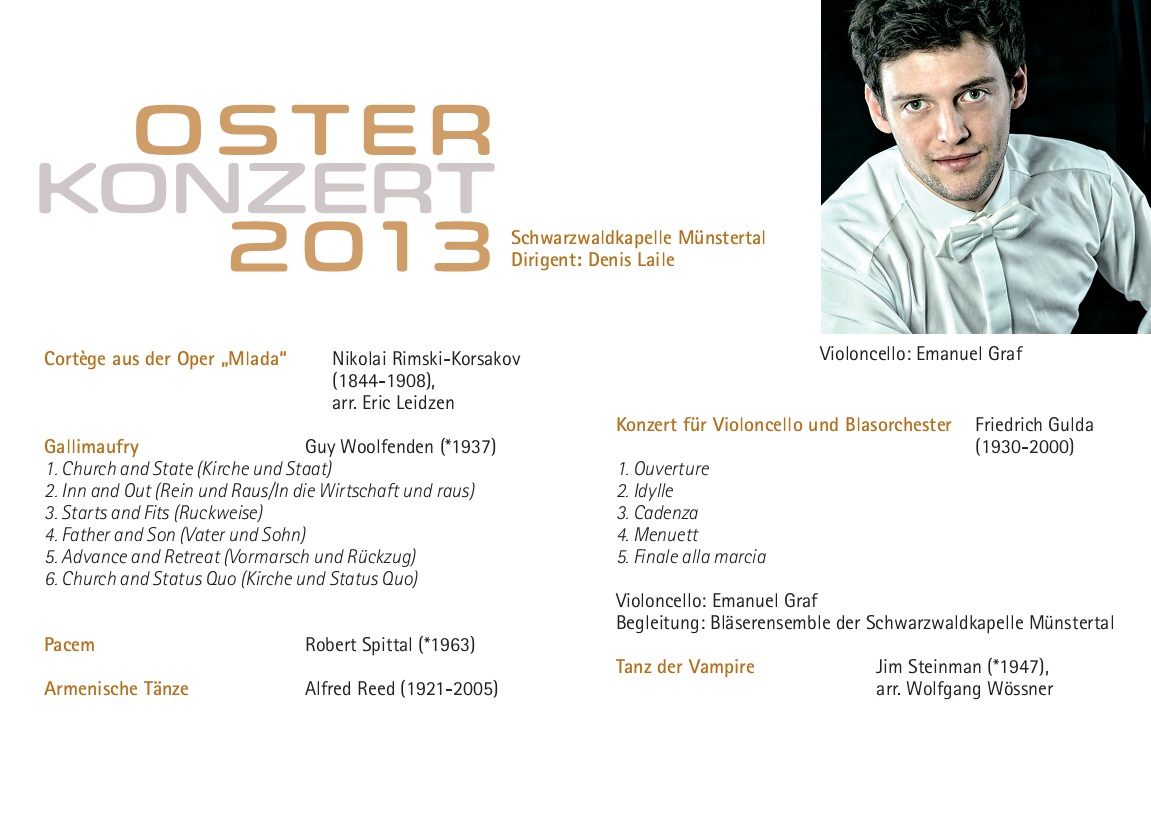 Das Osterkonzert ist der musikalische Höhepunkt im Jahresprogramm der Schwarzwaldkapelle. Es wird seit 1972 in ununterbrochener Folge veranstaltet und lockt zahlreiche Besucher auch von weit außerhalb des Münstertals an.